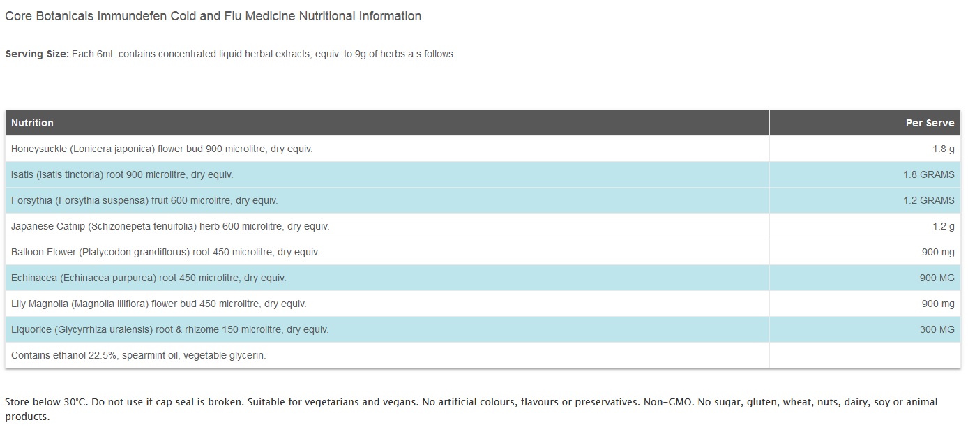Core Botanicals Immundefen Cold and Flu Medicine