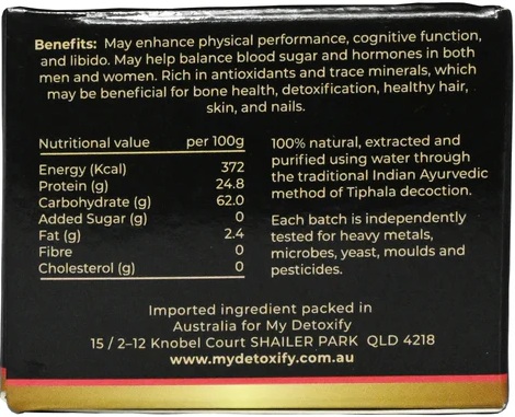My Detoxify Organic Shilajit Resin is a high-potency adaptogenic supplement formulated to enhance nutrient absorption, endurance, immune balance, and mental clarity. Harvested from pristine Himalayan altitudes, it offers a concentrated source of fulvic acid and trace minerals in their most bioavailable form. Free from harsh chemicals and synthetic ingredients, it represents pure, traditional wellness in every serving.